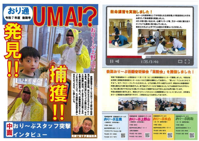 おり~ぶ通信トップページ > 〇おり~ぶ四事業所(五橋・上野山・鈎取・太白) > おり~ぶ通信おり~ぶ通信 令和7年度 後期号!!おり通令和7年後期号お待たせいたしましたおり~ぶ通信令和7年度後期号をお送りいたします。『もぐもぐ通信 for おり~ぶ第11回』も併せてご覧くださいませもぐもぐ通信第11号おり~ぶ通信 令和6年度 後期号!!おり通令和6年度後期号お待たせいたしましたおり~ぶ通信令和6年度後期号をお送りいたします。『もぐもぐ通信 for おり~ぶ第9回』も併せてご覧くださいませ